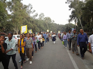 DUTA’s ‘Whistleblowers’ March’ weaved its way through the Delhi University Campus to culminate in a massive human chain and ‘chakka jam’ at the Ramjas College intersection today. Large numbers of teachers, students and karamcharis came together under the DUTA’s banner to demand immediate action against the DU Vice Chancellor who has been found guilty of diverting over 100 crore rupees from the OBC Expansion Grant towards the FYUP laptops which are lying unused in colleges now. Besides this, the DUTA has submitted a detailed White Paper to the Government, against severe financial and administrative irregularities committed by the VC and his team of officials. However, the Government has been dragging its feet regarding the Report submitted by the UGC’s Satyam Committee. Neither has it responded yet to the DUTA’s demand for a Visitorial Inquiry against the VC.