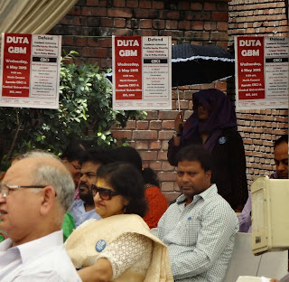 The DUTA GBM also unanimously resolved to reiterate its demand for the removal of the DU VC. It expressed dismay at the fact that disciplinary proceedings for his removal have seemingly come to a standstill despite the severity of the charges proven against him. Through their inaction, the Government and the Visitor are allowing him to continue his spree of arbitrary decision-making, mis-governance and victimization of teachers. Teachers from several colleges and departments of DU are battling against corrupt and vindictive authorities who are being aided by the Vice-Chancellor. The DUTA also adopted a second Resolution highlighting all the important issues that have deliberately been allowed to remain unresolved at the VC’s behest, as a result of which the university community continues to suffer on a daily basis.