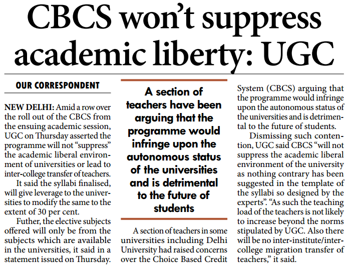 CBCS won’t suppress academic liberty: UGC | Millennium Post