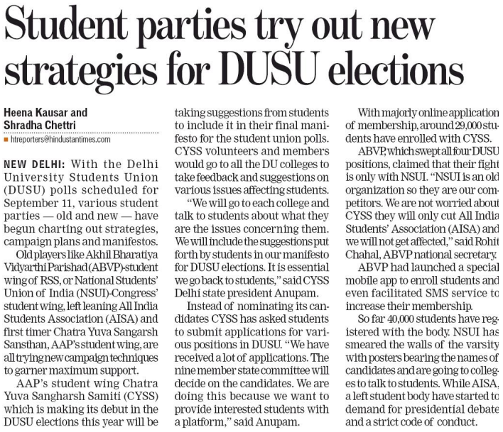 Student parties try out new strategies for DUSU elections – Hindustan Times