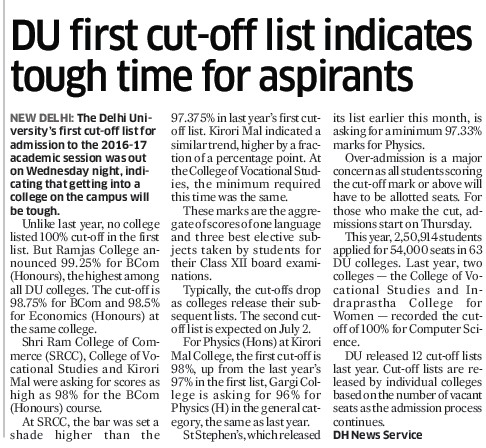 DU first cut-off list indicates tough time for aspirants | Deccan Herald