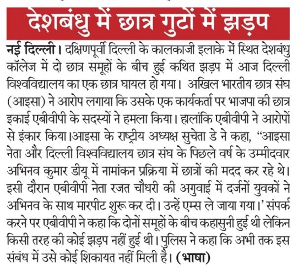 देशबन्धु में छात्र गुटों में झड़प | Rashtriya Sahara