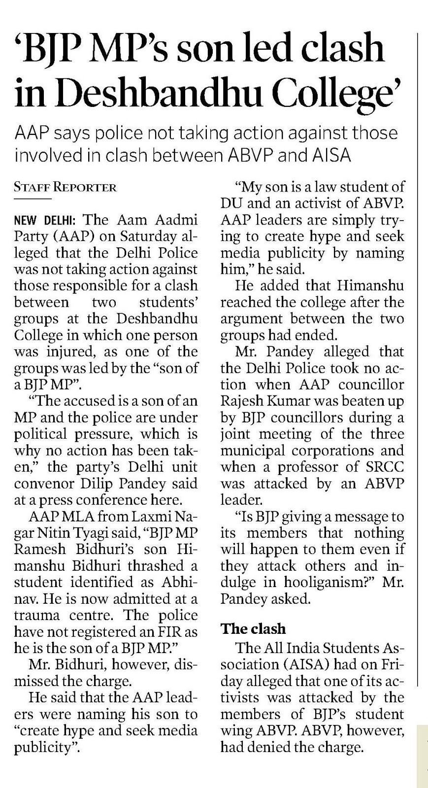 ‘BJP MP’s son led clash in Deshbandhu College’ | The Hindu