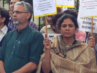 The so-called “autonomy” is clearly only for the management as it gives it unbridled powers to GB’s to start new courses and raise fees, and is likely to adversely affect service conditions of teachers and non-teaching employees, as well as the democratic culture of the colleges. Far from promoting academic freedom as it purports to do, it is likely to degenerate into an autocracy. By sharply increasing the number of short term marketable courses taught by low-paid contractual teachers, the quality of education imparted is likely to decline. Moreover, the steep increase in fees would further reduce access to marginalised sections. Unfortunately, some members of Governing Bodies who have a non-academic/business background are getting tempted by the prospect of unbridled commercialisation and control, without realising that without continued Government funding, colleges would soon be reduced to academically unviable and financially unstable teaching shops.