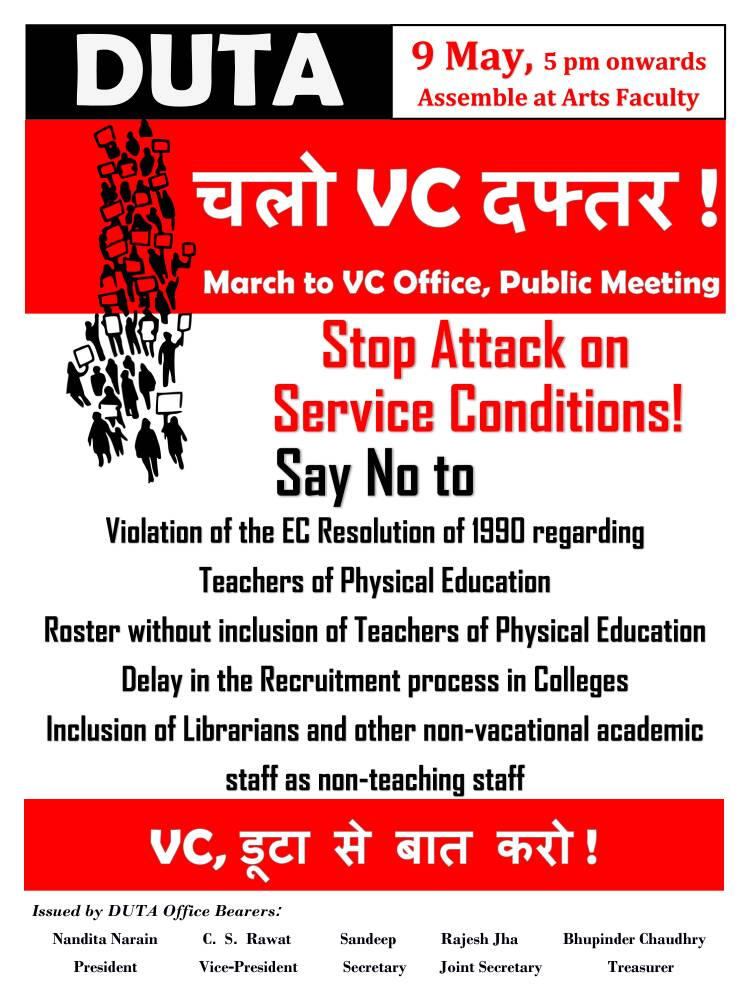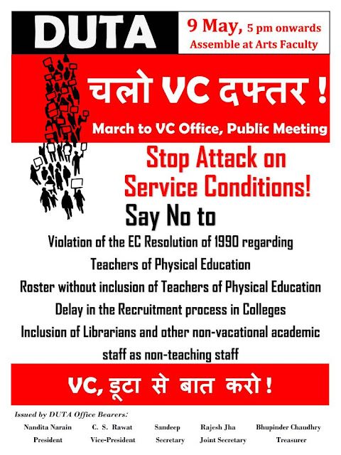 चलो VC दफ्तर! March to VC Office, Public Meeting – 9 May, 5 pm onwards, Assemble at Arts Faculty