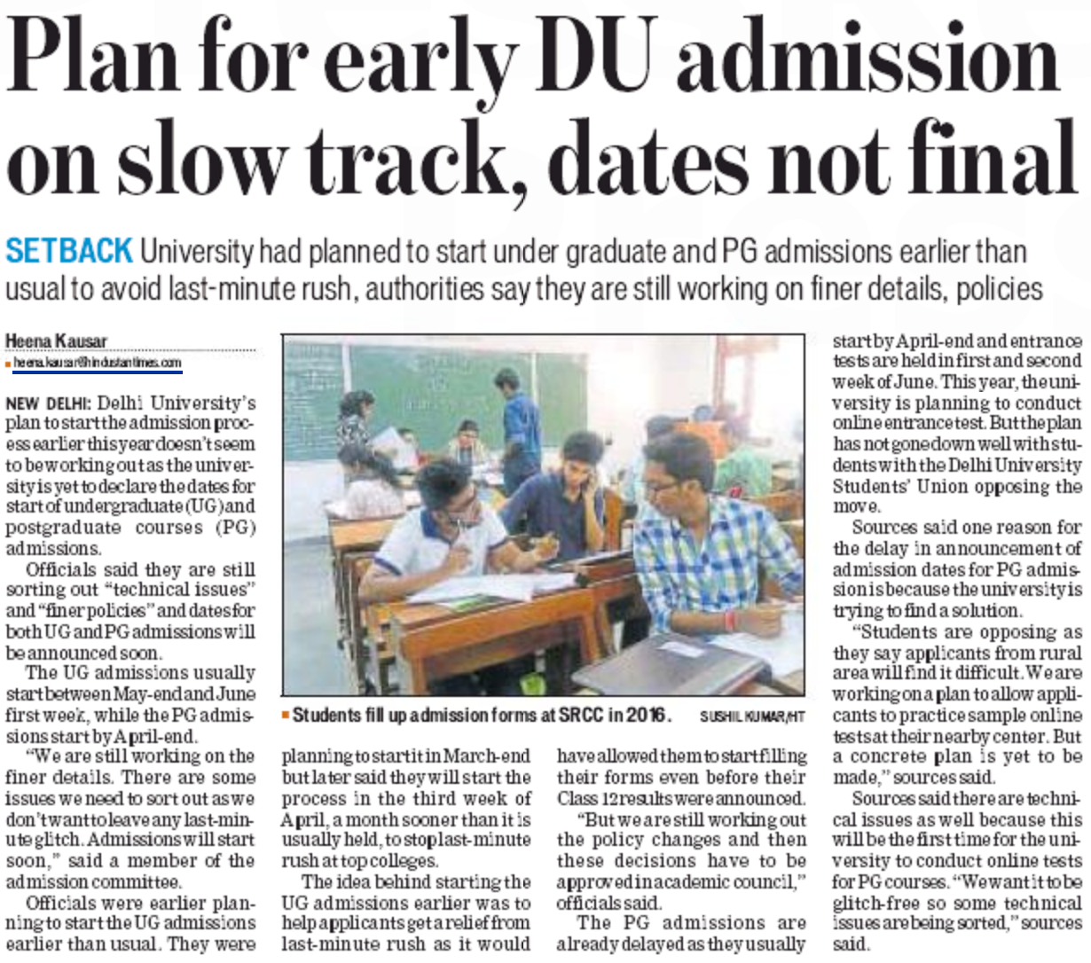 DU admission dates not final yet, plan for early process on slow track | Hindustan Times