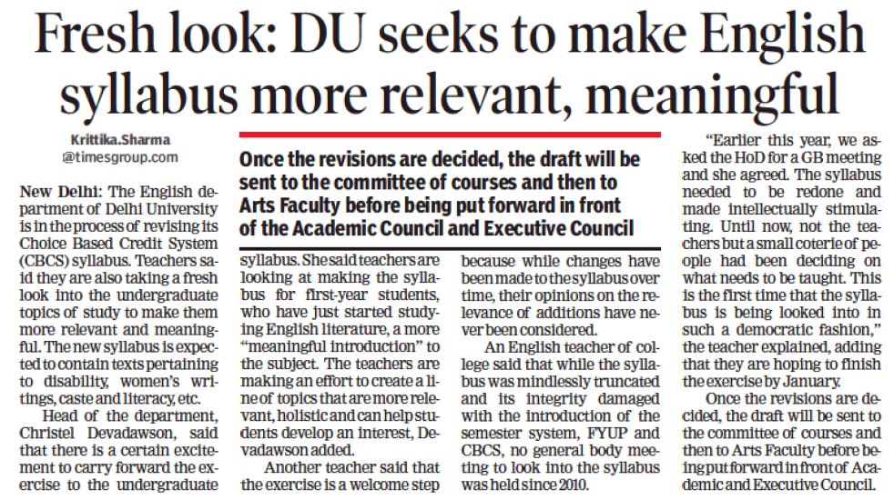 Fresh look: DU seeks to make English syllabus more relevant, meaningful | TOI