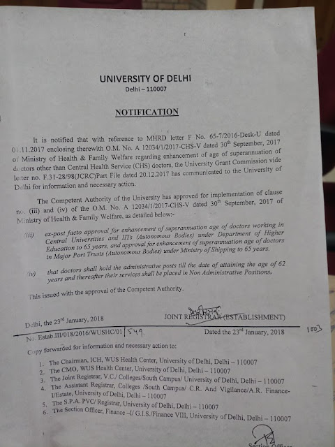On a different note, the notification for the enhancement of superannuation age for doctors was finally notified by the University and in doing so, our friends, too, will now retire at 65 years.
