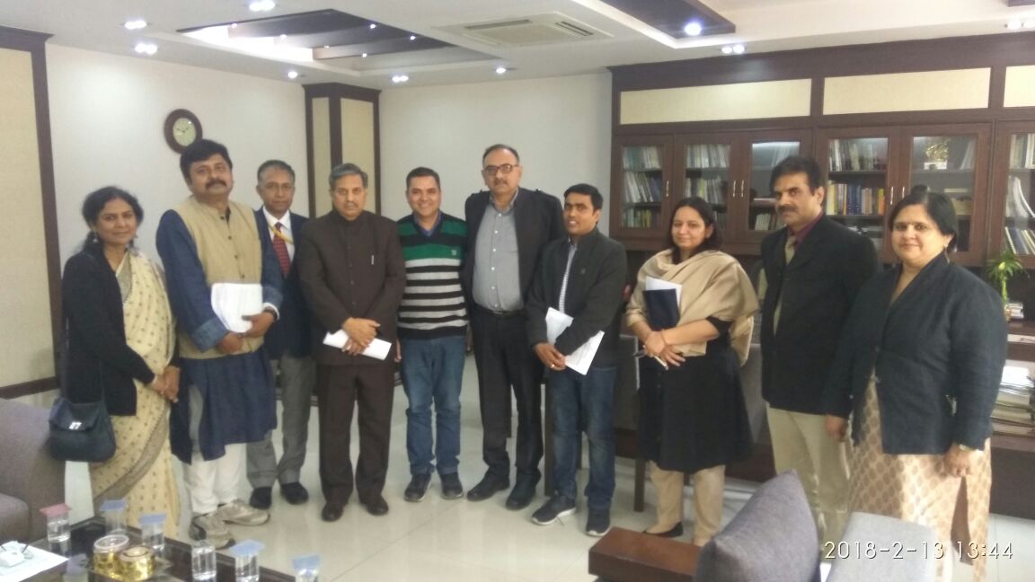 A delegation of DUTA office-bearers met the UGC officials today to deliberate upon the MHRD notification dt 2.11.2017 on the VII Pay Revision along with the initial response to the Draft Regulations 2018 uploaded on 09.02.2018 as a Public Notice. The delegation comprising of the DUTA President Rajib Ray, Vice-President Sudhanshu Kumar, Secretary Vivek Chaudhury, Joint Secretary Alok Ranjan Pandey and the Treasurer Najma Rahmani, apprised the UGC delegation comprising the UGC Chairman, the Secretary and other officials about the retrograde recommendations of the VII Pay Revision as well as the worrying features of the Draft UGC Regulations 2018. The main focal points of the deliberation today are as follows: