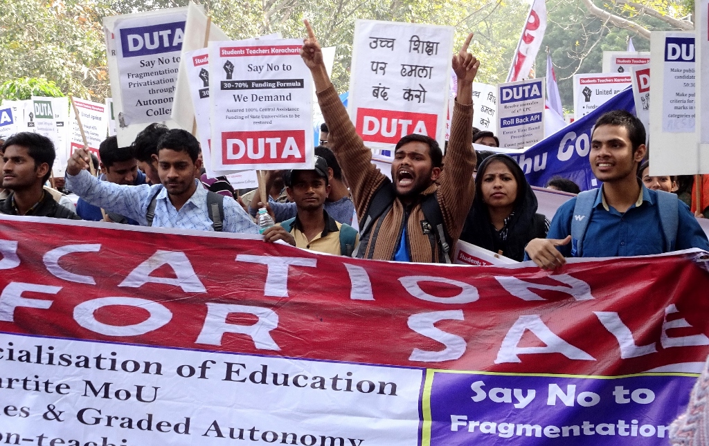 This year’s allocation to the UGC in the Union Budget has further decreased. Grants to public funded institutions including Universities, IITs and IIMs for infrastructural needs are being replaced by loans to be disbursed through the Higher Education Funding Agency (HEFA). This major policy shift in funding will result in massive fee hike for students on one hand and delay in implementation of 7th Pay Revision, appointments and promotions. Teachers and students are also agitated about the Regulations on Autonomous Colleges and Graded Autonomy recently gazetted on 12 February 2018. In total disregard of the feedback given by teachers’ unions, the Government has gone ahead with the scheme. This is yet another way to turn public funded institutions of repute into teaching shops.
