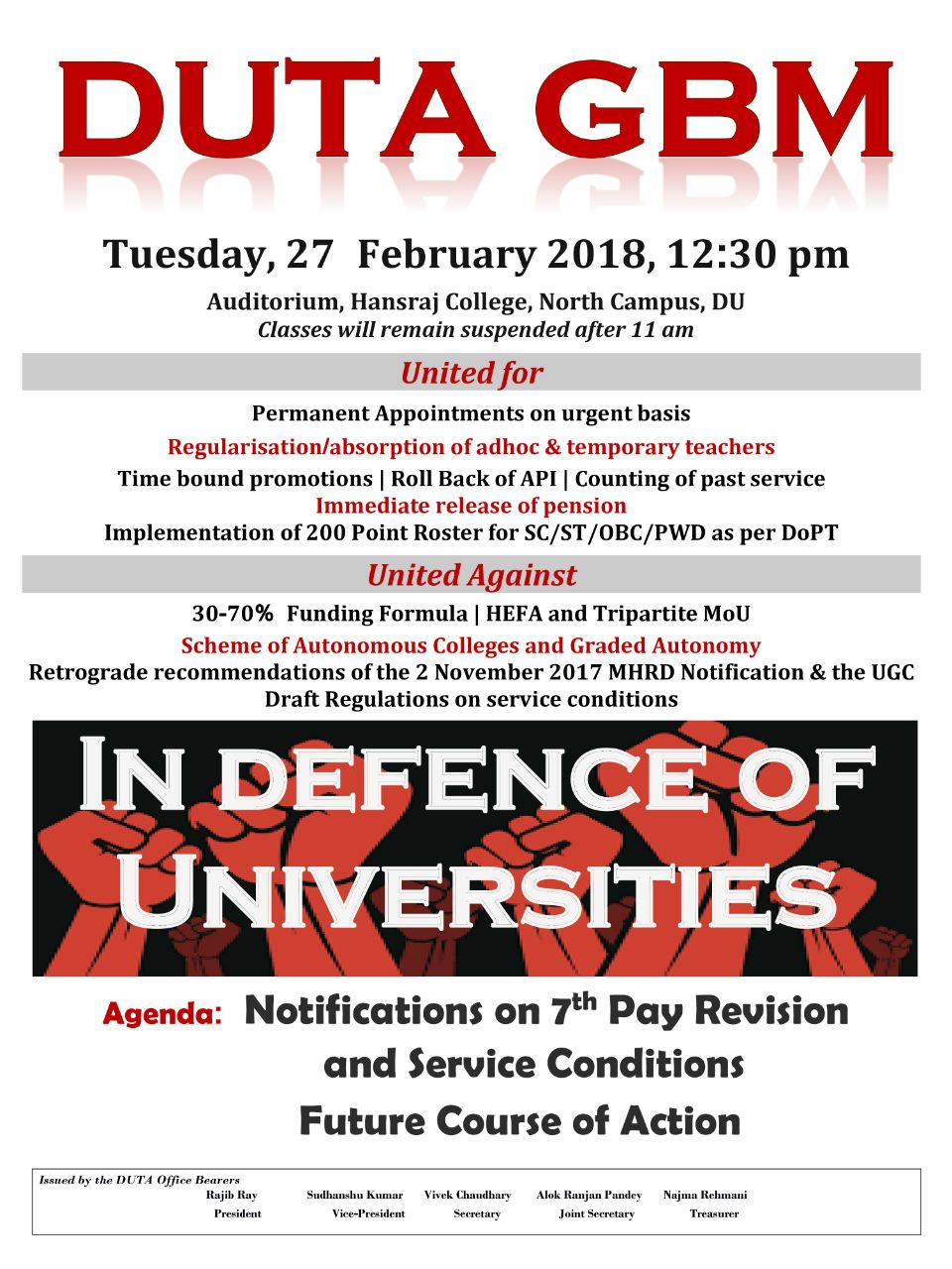 DUTA GBM, 27 February, 12:30 pm – Auditorium, Hansraj College