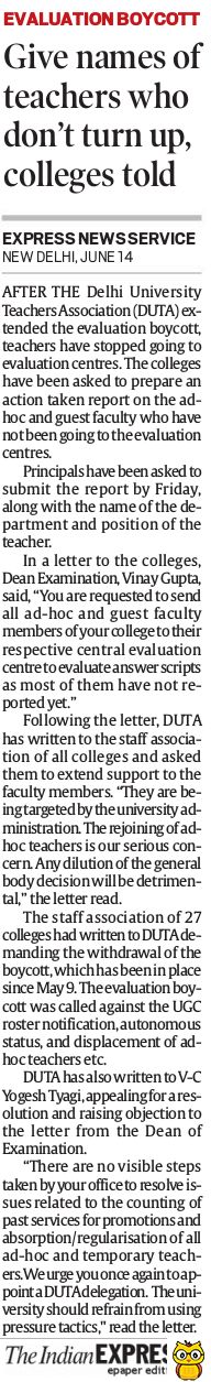 DU evaluation boycott: Give names of teachers who don’t turn up, colleges told | The Indian Express