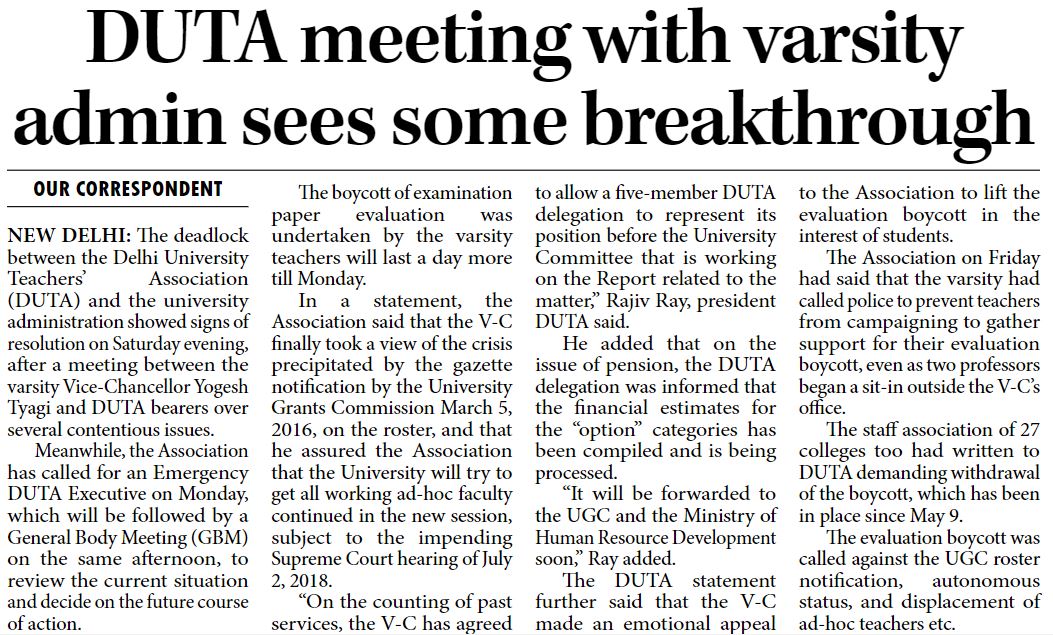 DUTA meeting with varsity admin sees some breakthrough | Millennium Post