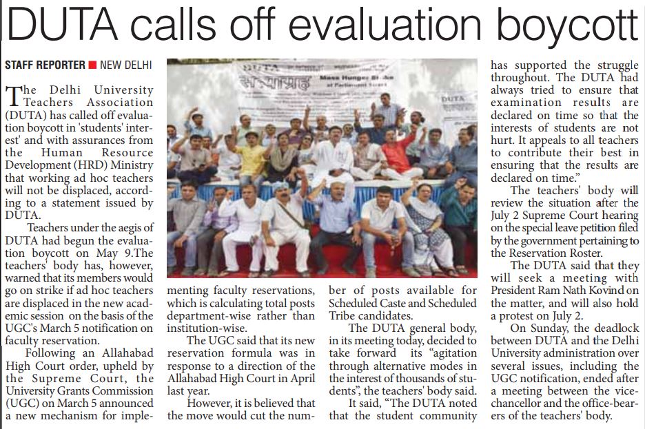 DUTA CALLS OFF EVALUATION BOYCOTT – The Pioneer