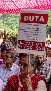 The DUTA will launch a series of more militant agitations in the coming days if the Government and the University Administration continues to ignore the long-pending demands of promotions, 7th Pay allowances, pensions and permanent appointments for the teaching community. The DUTA will reach out to students and parents and forge greater solidarities across Central and State Universities to fight against schemes like Tripartite MoU, replacement of grants by loans through HEFA and self-financing courses.