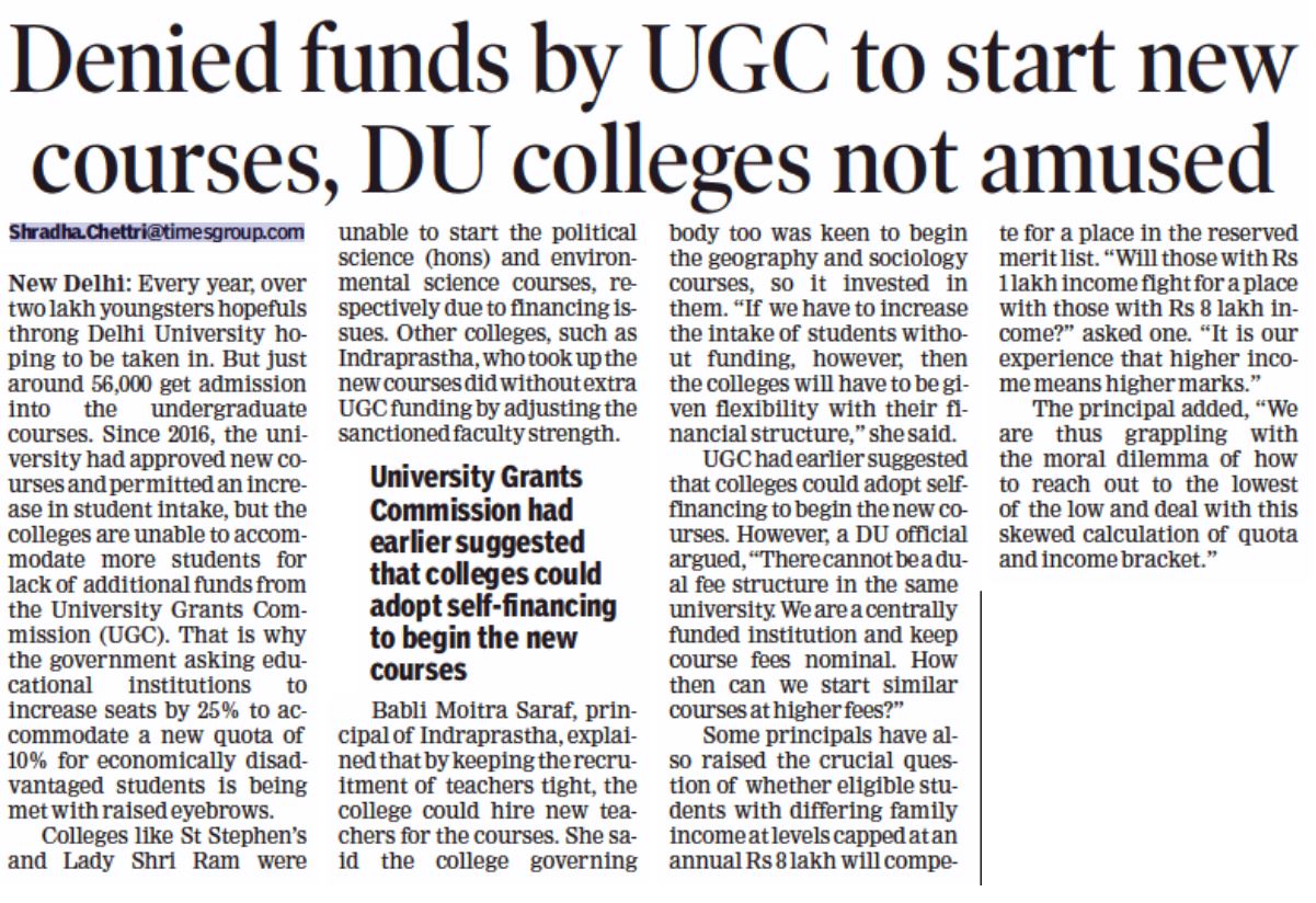 Denied funds by UGC to start new courses, DU colleges not amused | TOI