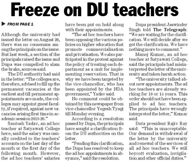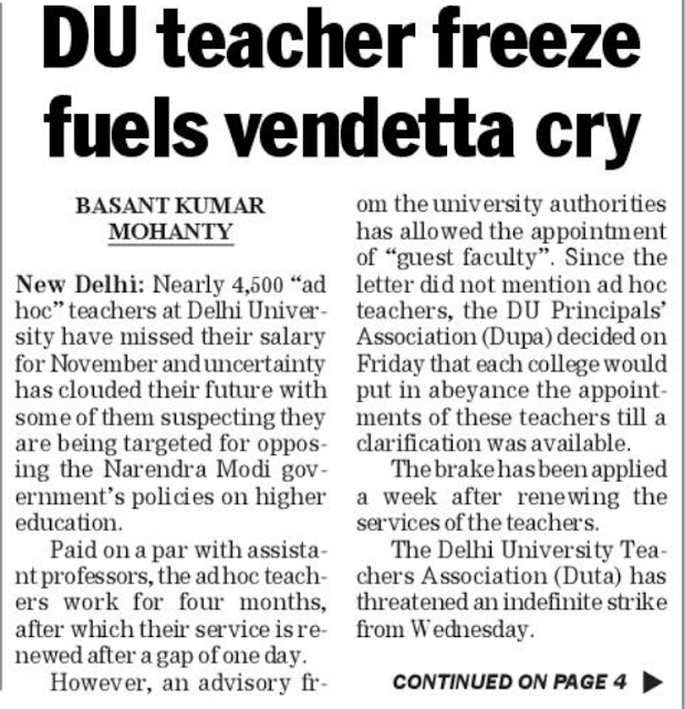 DU teacher freeze fuels vendetta cry – The Telegraph