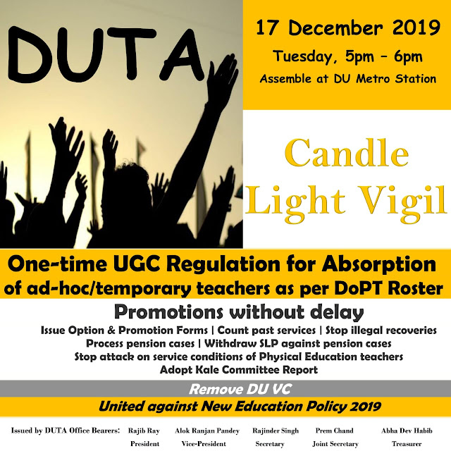 DUTA Candle Light Vigil: 17 December 2019, 5pm – 6pm – Assemble at DU Metro Station