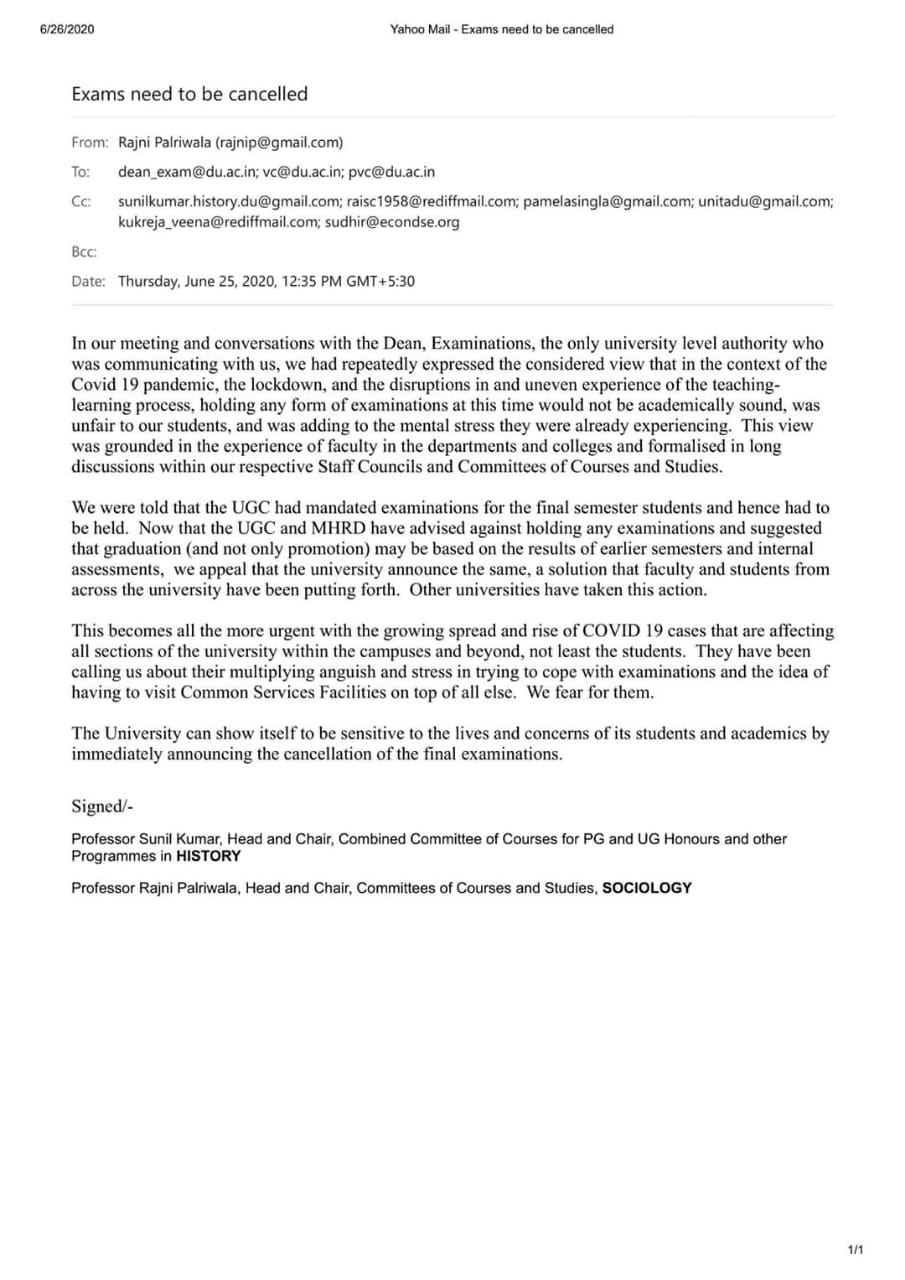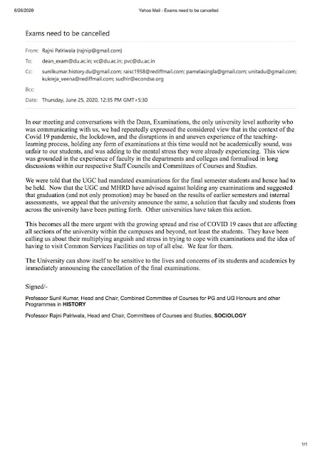 Heads of Departments of History and Sociology write to the VC, PVC and Dean