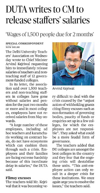 DUTA writes to CM to release staffers’ salaries | The Hindu