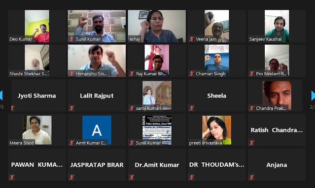 Amongst other senior faculty, Teachers-in-Charge of the Department of History and English joined the DUTA Online Protest Dharna. They were removed from the meeting of TiCs held yesterday by Dr Hina Nandrajog as they questioned her continuation in the chair despite the fact that she has not received necessary approval from the University to continue.
