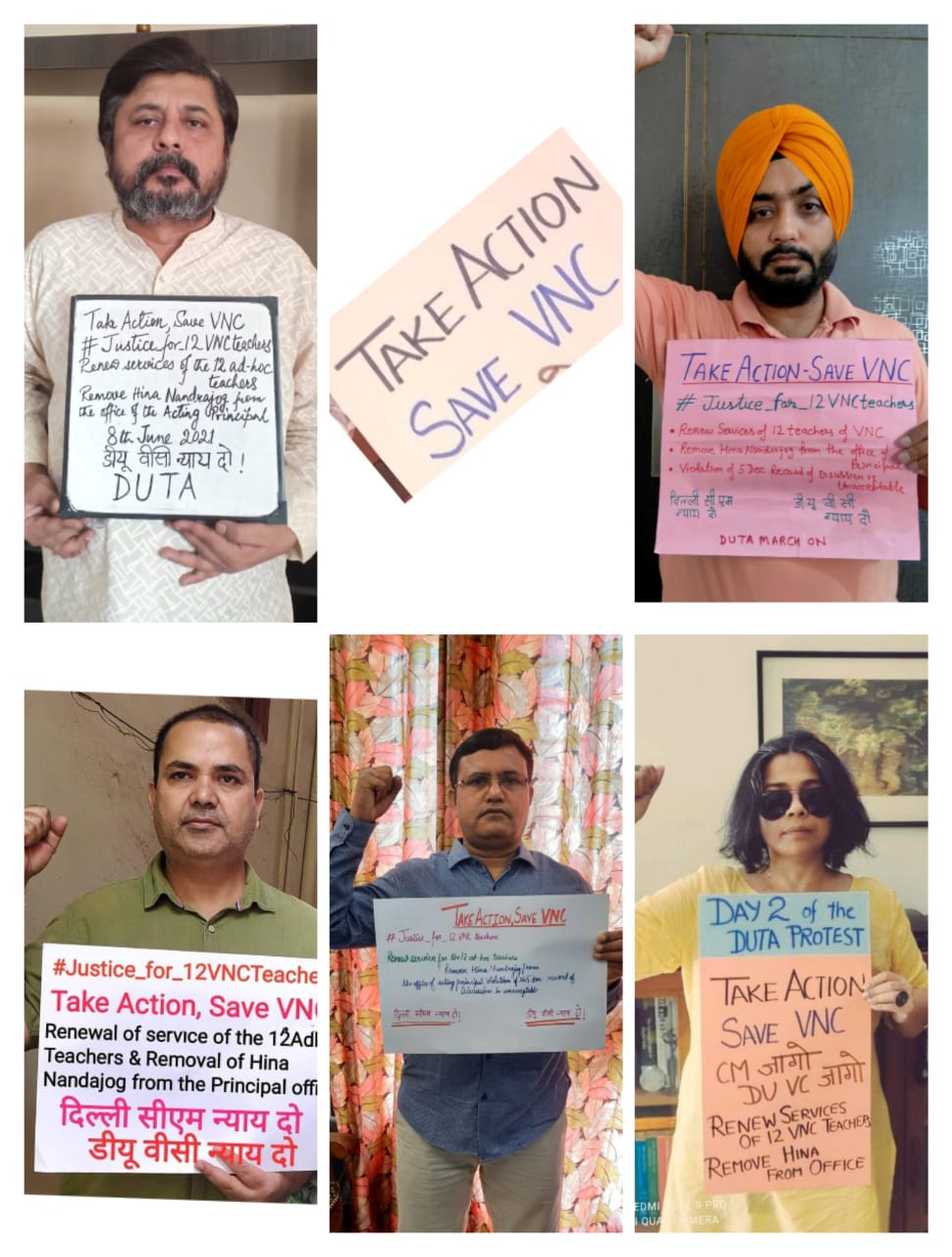 On the second day of the DUTA online Protest Dharna, teachers of VNC shared their experiences of harassment and witch hunting.